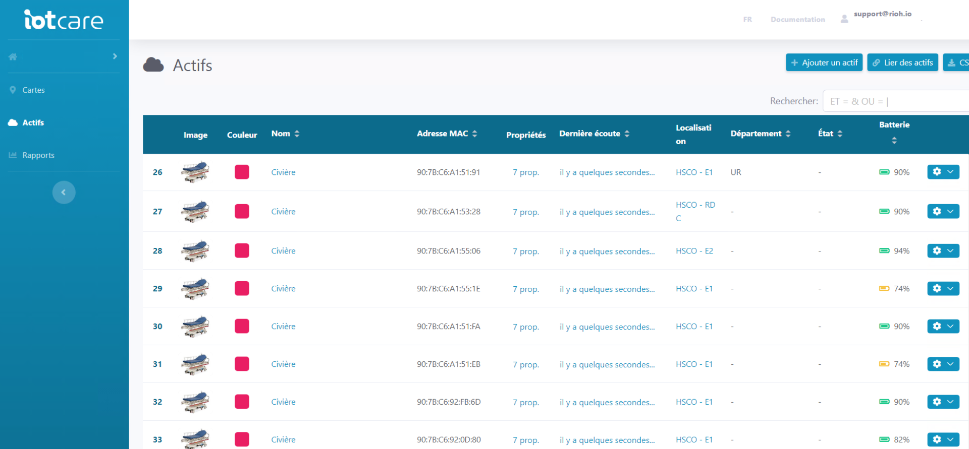 Libérez votre emploi du temps. Réduisez le temps perdu à chercher du matériel. Grâce à IoTcare, trouver l’équipement facilement dès que vous en avez besoin. Suivez votre inventaire en un seul clic et éliminez les coûts liés aux remplacements inutiles.